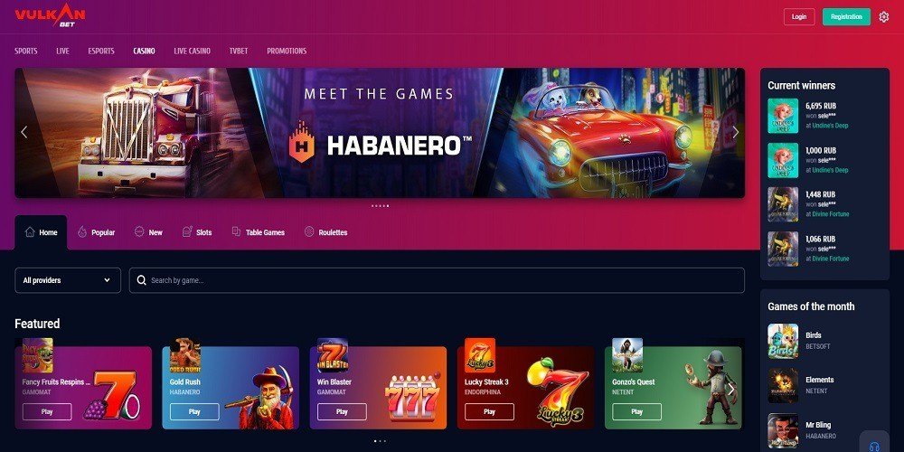 Vulkan Bet casino offers nearly 1.200 games to play in different categories. The majority of these options are available in the slot machines category, as can be guessed, but all kinds of other casino games are also available. The providers of Vulkan Bet are Gamomat, Endorphina, Habanero, Amatic,