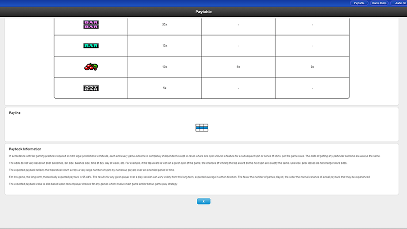 The cherry is the low valued icon, and the 7 in red carries a higher payout. The maximum payout is offered for the game’s logo and getting 3 of them on a line in a round offers 1000x. There are no scatter icons.